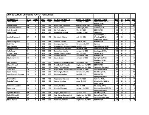 View The Oilers Training Camp Roster Edmonton Oilers